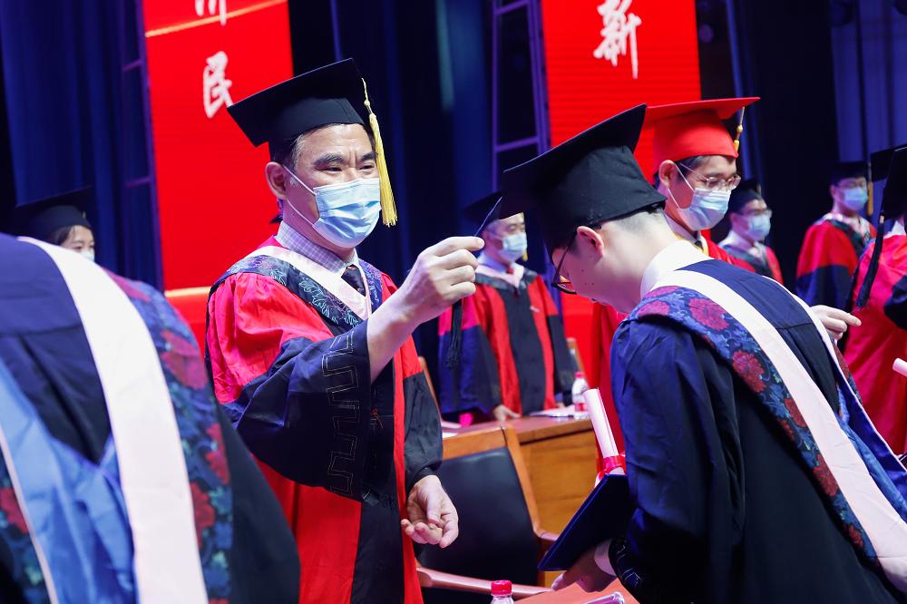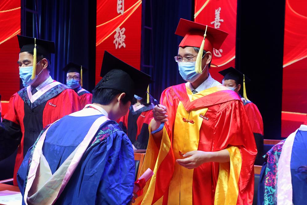 南山风起,栀子花开。6月24日上午,我校2020届毕业生毕业典礼暨学位授予仪式在华体会体育·(sports)官方网站剧场隆重举行。疫情当下,今年我校毕业典礼采取“线上+线下”相结合,现场典礼与网络直播同频共振的形式进行。全体在家校领导,学校学位评定委员会委员代表,专家教授代表,校友代表等350余人参加了线下仪式,线上近28万人参加了本次典礼,共同见证6268名本科生和606名研究生顺利获得了学士、硕士和博士学位,踏上人生新的征程。本次毕业生毕业典礼暨学位授位仪式由副校长李国军主持。