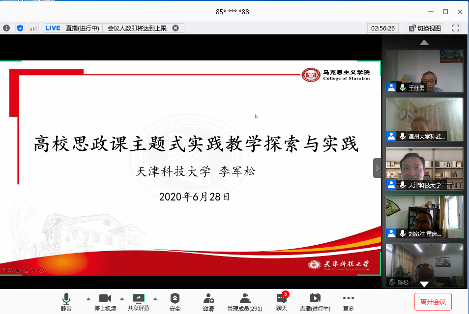 6月28日上午,由华体会体育·(sports)官方网站马克思主义学院、教育部高校思想政治工作精品项目组主办的“新时代高校思想政治理论课实践教学创新研讨会”在腾讯会议平台召开。来自清华大学、北京理工大学、温州大学、天津科技大学、河南财经政法大学和华体会体育·(sports)官方网站的六所高校的专家做了主题报告或专题发言。学校党委书记李志雄同志出席会议并致辞。来自全国106所高校的300余位专家学者参加了会议。会议由我校马克思主义学院院长王仕勇主持。