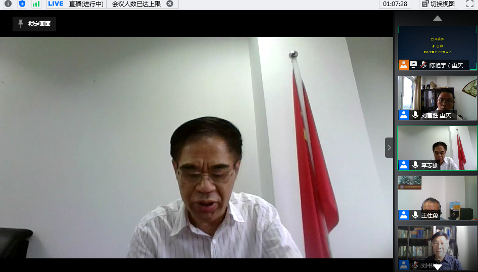 李志雄书记对各位专家学者参与会议表示热烈欢迎。他指出,学校党委和行政高度重视马克思主义学院、马克思主义理论学科和思想政治理论课建设,积极打造思想政治理论课金课。学校马克思主义学院全力提升思想政治理论课实效,按照“政治高度、理论深度、课堂热度和持续效度”的评价标准,重点推进专题化教学、综合化实践、立体化考核等三大改革。学校长期坚持思想政治理论课实践教学探索,上个世纪末开展的“家长学生两地书”活动,入选了中共中央宣传部宣教司、教育部社会科学司与思想政治工作司、共青团中央学校部主编的《加强和改进大学生思想政治教育优秀案例选编》,中央电视台、人民日报、光明日报、中国青年报、中国教育报等全国百余家主流媒体进行了报道。2017年开始,我校面向全体本科生开设了《思想政治理论课综合实践》公共必修课,对思想政治理论课实践教学进行了新探索,并取得较好效果。“‘互联网+’环境下高校思想政治理论课实践教学‘三结合’模式探索”入选2019年度教育部高校思想政治理论课教学方法改革项目择优推广计划,“思想政治理论课综合实践”被重庆市教委推荐参评国家级本科一流课程,“‘三支撑三覆盖两结合’的思想政治理论课实践育人模式”入选2020年全国高校思想政治工作精品项目。李书记强调,我校在思想政治理论课建设方面取得的成绩与兄弟院校专家学者的帮助密不可分,在疫情防控期间通过网络召开这次云端会议,就是要进一步聆听专家学者的意见建议,进一步学习兄弟高校的先进经验,进一步推动思想政治理论课实践教学创新,进一步彰显“思想政治理论课是落实立德树人根本任务的关键课程”的地位和作用。