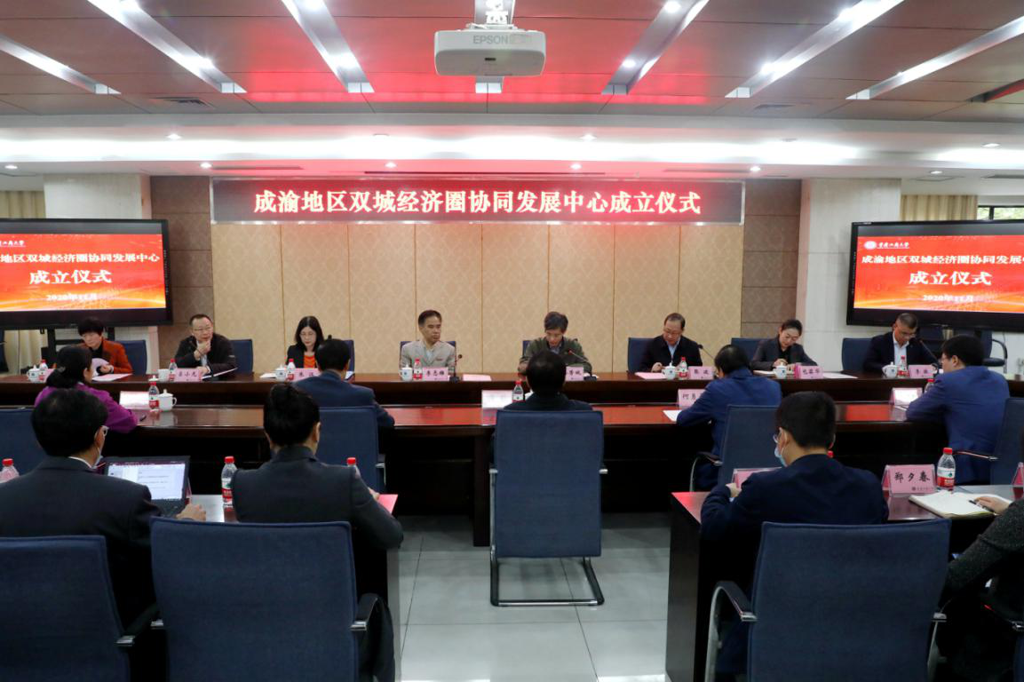 为更好地助推成渝地区双城经济圈建设,11月18日上午,成渝地区双城经济圈协同发展中心成立仪式在我校厚德楼2017会议室成功举行。重庆市发展和改革委员会总经济师朱江,重庆市政府发展研究中心副主任、重庆市社科院副院长张波,重庆市综合经济研究院院长、市政协经济委员会副主任易小光,南岸区副区长包茹华,相关校领导,各职能部门负责人、学院院长及师生代表参加本次会议。会议由副校长李敬主持。