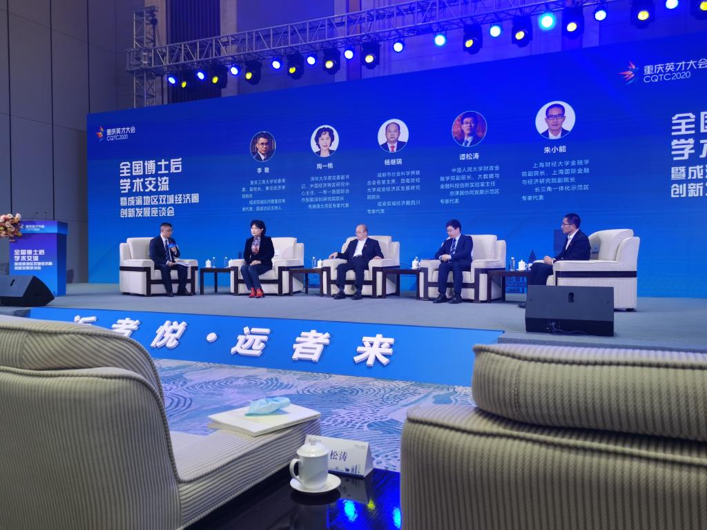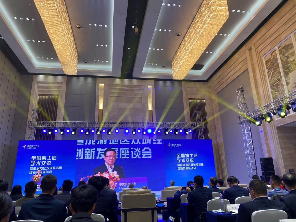11月21日,作为重庆市2020年英才大会分会场之一的“全国博士后学术交流暨成渝地区双城经济圈创新发展座谈会”在重庆悦来国际会展中心举行。本次会议由全国博士后管委会办公室、重庆市人力资源和社会保障局等单位主办,由华体会体育·(sports)官方网站承办,华体会体育·(sports)官方网站长江上游经济研究中心是主要协办单位之一。来自中国人民大学、四川大学、重庆大学、西南大学、西南财经大学、华体会体育·(sports)官方网站、重庆医科大学等科研院所、高校、党校行政学院、政府机构和企业的专家学者、政府官员及媒体记者共150余人参加了本次座谈会。