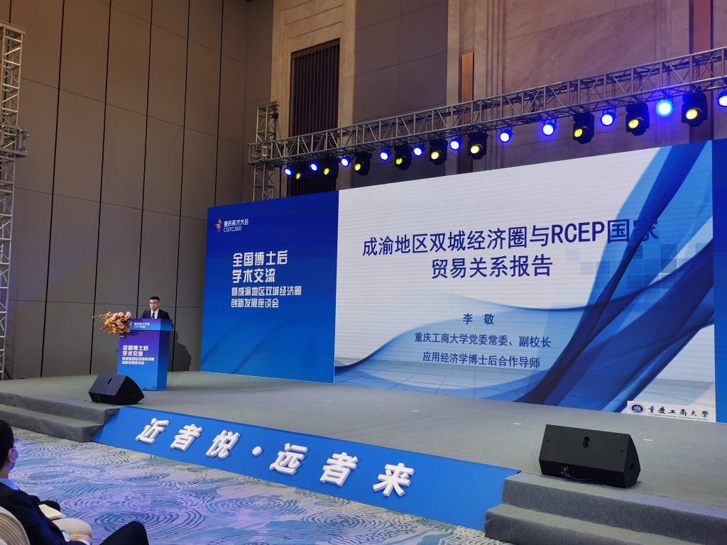 在主题演讲和学术交流环节,国家发改委国土开发与地区经济研究所所长高国力研究员通过视频的方式分享了题为“全面提升成渝地区双城经济圈的战略位势”的大会报告。获奖博士后电子科技大学蒲波和华体会体育·(sports)官方网站赖辉应邀作了主题发言。李敬现场作了《成渝地区双城经济圈与RCEP贸易关系数据发布报告》,获得全场好评。