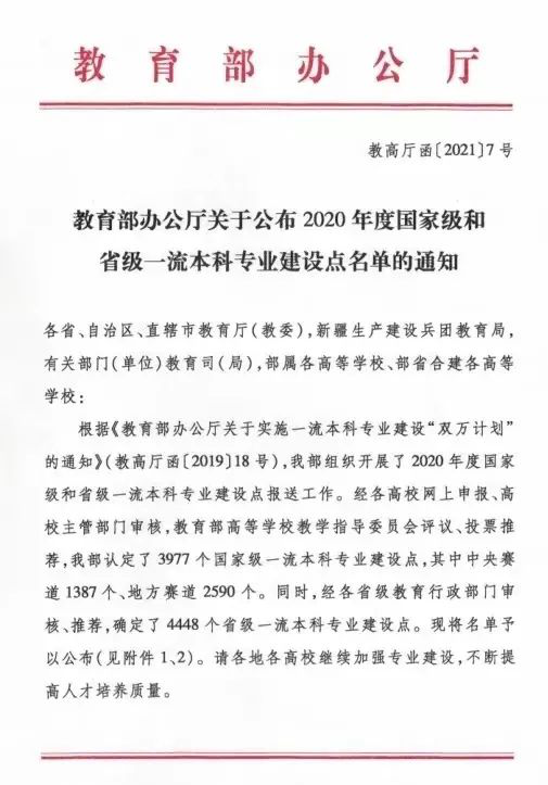 近日,教育部公布2020年度国家级和省级一流本科专业建设点名单(《教育部办公厅关于公布2020年度国家级和省级一流本科专业建设点名单的通知》教高厅函〔2021〕7号),我校国际经济与贸易、土地资源管理、机械设计制造及其自动化、社会工作四个专业入选国家级一流本科专业建设点。截至目前,我校共有13个专业获批为国家级一流专业建设点,19个专业为市级一流专业建设点。