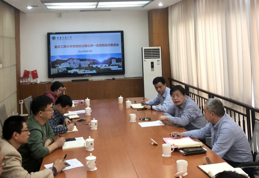 何勇平在讲话中指出,学校党委和行政积极落实上级文件精神,高度重视思想政治理论课建设。学校党委常委会、校长办公会多次专题研究,党委书记和校长多次到马克思主义学院现场办公,召开思政课建设推进会,深入课堂听思政课讲思政课,切实解决思想政治理论课建设中面临的迫切问题;全体党委班子成员都积极支持和参与思政课建设。他充分肯定了近年来我校在思想政治理论课建设中取得的标志性成绩:一是构建了覆盖本科、硕士研究生和博士研究生三个阶段的“习近平新时代中国特色社会主义思想”选修课,邀请校内外、市内外专家学者共同打造本门课程,形成良好影响;二是重点学院、重点学科、重点课程建设取得显著成效,获评重庆市重点马克思主义学院、以“优秀”成绩通过“十三五”重点学科验收、《思想政治理论课综合实践》入选首批国家级一流本科课程;三是人才培养取得较大突破,在“十三五”期间有教师入选“万人计划领军人才”、中宣部“四个一批”人才、国务院特殊津贴专家、教育部教学指导委员会委员,以及教育部网络名师培育计划、重庆英才·名家名师等;四是教师教学能力提升显著,6位教师参加重庆市高校思想政治理论课教师教学技能大赛获得一等奖和二等奖、2位教师参加重庆市创新课程大赛获得二等奖和三等奖,5位教师入选重庆市高校思想政治理论课教师“择优资助”计划,1位老师入选教育部高校思想政治理论课教师“择优资助”计划。他强调,我们在看到成绩的同时,也应该看到我们与全国重点马克思主义学院的差距。教师的教学能力与教学质量提升的空间还较大、一流课程建设的数量还不够、教学与科研融合发展的意识还不够强。上好思政课,关键在教师!因此,调动教师的积极性、主动性和创造性,深入推进思政课教学创新、高质量建设一流课程,显得尤为迫切。他要求,教务处和马克思主义学院,一要持续推动思政课教学改革,培育和打造精品教学团队,充分利用学校已建成的涵智楼“智慧教室”,积极探索实施教学技术革命,进一步建设好线上线下混合式教学,同时深入探索“专题化”、“平台化”、“活页式”等教学模式创新和教师教学团队重组;二要进一步探索考试评价改革,完善多元评价体系,做好学生评教改革和毕业生思想政治素质追踪工作;三要着力一流本科课程建设,要统筹好实践教学“大基地、小基地”建设,结合党史学习教育,会同经管实验教学中心探索、构建“红色商贸”场景空间,讲好红色故事,培育一代新人;四要注重课程建设成果、教改成果的推广应用以及标志性成果的交流与发表,培育思政课“三大奖”。要抓住机遇,争取在5年内把学校各门思政课建设成为市级、国家级一流本科课程。