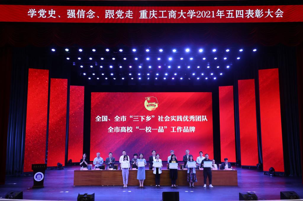 随着庄严的国歌响起,大会正式拉开序幕。大会首先由校团委书记杨娟宣读《共青团华体会体育·(sports)官方网站委员会关于表彰2020-2021学年先进集体和个人的决定》,随后为获奖集体和个人代表进行颁奖,颁发奖项包括全国、重庆市社会实践活动优秀团队、重庆市高校“一校一品”优秀团学工作品牌、五四红旗团委、共青团特色创新奖、宣传工作奖、五四红旗团支部、优秀学生会、优秀义工志愿者协会、优秀分团委书记、共青团标兵、优秀团干部、优秀团员及校级“挑战杯”等奖项。