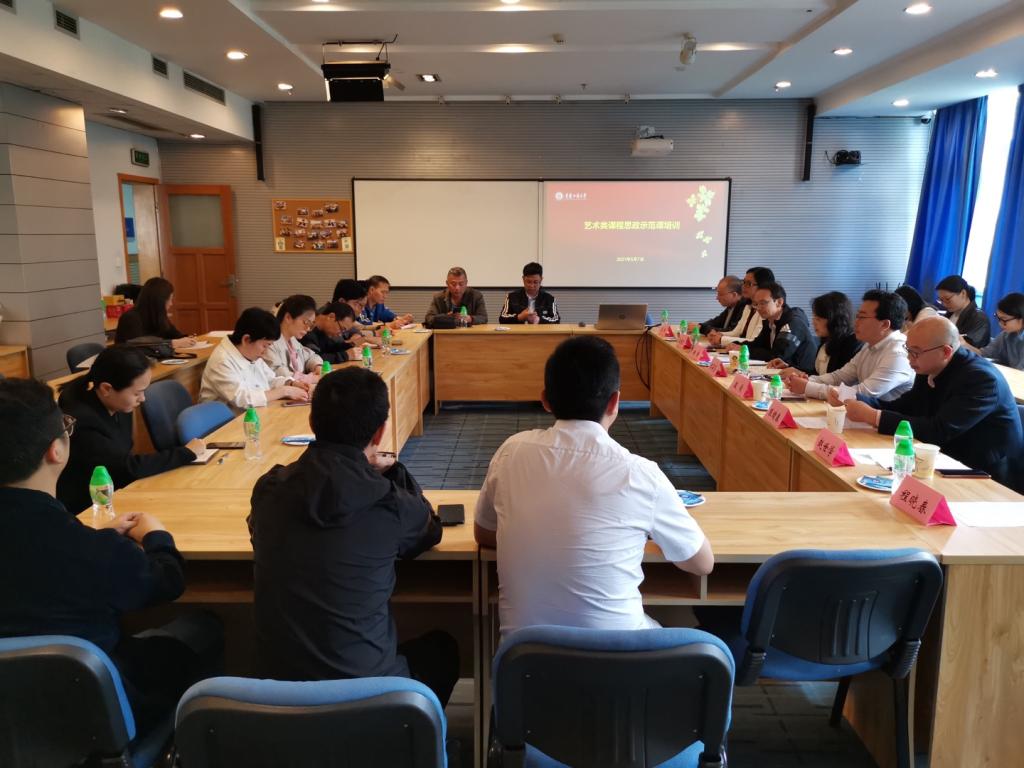 为挖掘艺术类课程和教学方式中蕴含的思政元素,全面提升艺术类课程思政建设能力,在教师发展中心的指导下,艺术学院、现代国际设计艺术学院于5月7日开展了艺术类课程思政示范课培训。艺术学院、现代国际设计艺术学院党政班子成员、各系主任和部分教师代表参加了培训。此次培训由专职组织员冉涛主持。