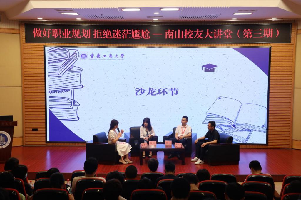 主题为“做好职业规划,拒绝迷茫尴尬”第三期南山校友大讲堂在博智楼7200会议室举行。校友会副会长王小玲,15级影视动画专业校友、现重庆御桃桃餐饮管理有限公司总经理杨澜,04级环境与资源专业校友、现新众源生态环境科技(重庆)有限公司总经理唐杰,09级现代国际设计艺术专业校友、现青鲸文化创始人廖李平,以及近10名优秀校友参与了本期大讲堂。王小玲希望同学们以优秀校友为榜样乘风破浪,扬帆远航。杨澜介绍了创业经历,详细分析了大学生迷茫期最常见的问题并从自信、认知、执行三点提出了建议。随后进行了校友沙龙环节,三位优秀校友代表为师弟师妹们答疑解惑,提供经验。