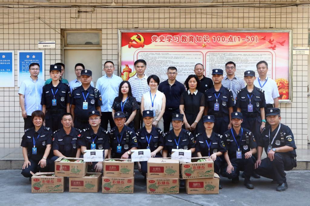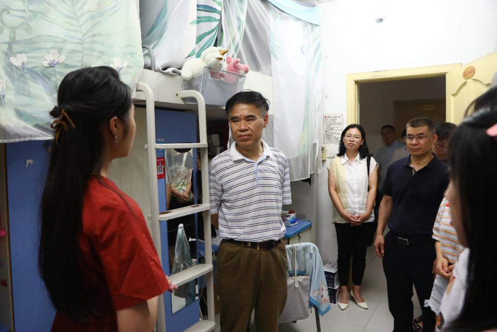 7月23日上午,学校党委书记李志雄、副校长李敬带领党政办公室、党委宣传部、学工部、保卫部、国际合作与交流处、后勤处、工会等相关部门负责人先后到学校厚德楼、保卫处、兰园食堂、兰花湖片区、留学生公寓、南区学生公寓、中干值班室等慰问暑期留校师生,与他们亲切交流、赠送慰问品并检查校园暑期安全工作。