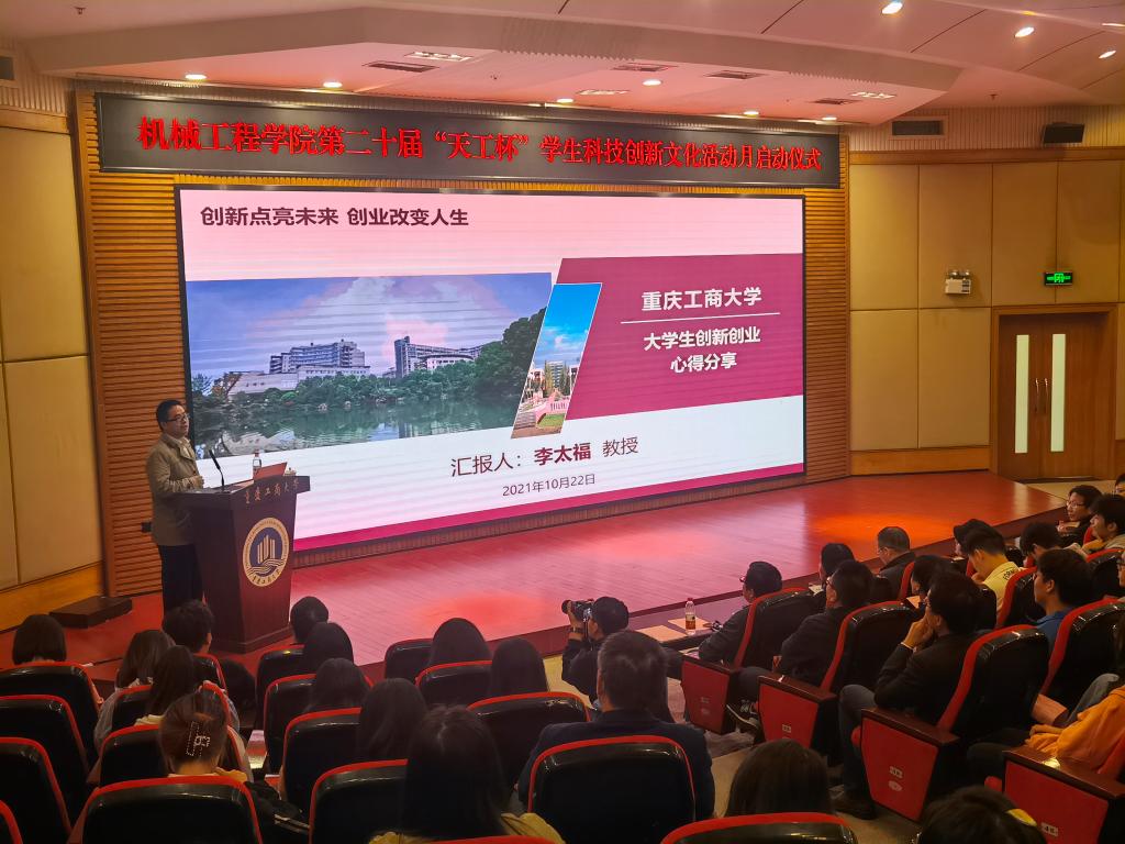 启动仪式结束后,学院还邀请中国国际“互联网+”大学生创新创业大赛评委、“挑战杯”全国大学生课外学术科技作品竞赛评委、重庆科技学院众创空间主任李太福教授,为同学们做《创新点亮未来 创业改变人生》创新创业主题讲座。