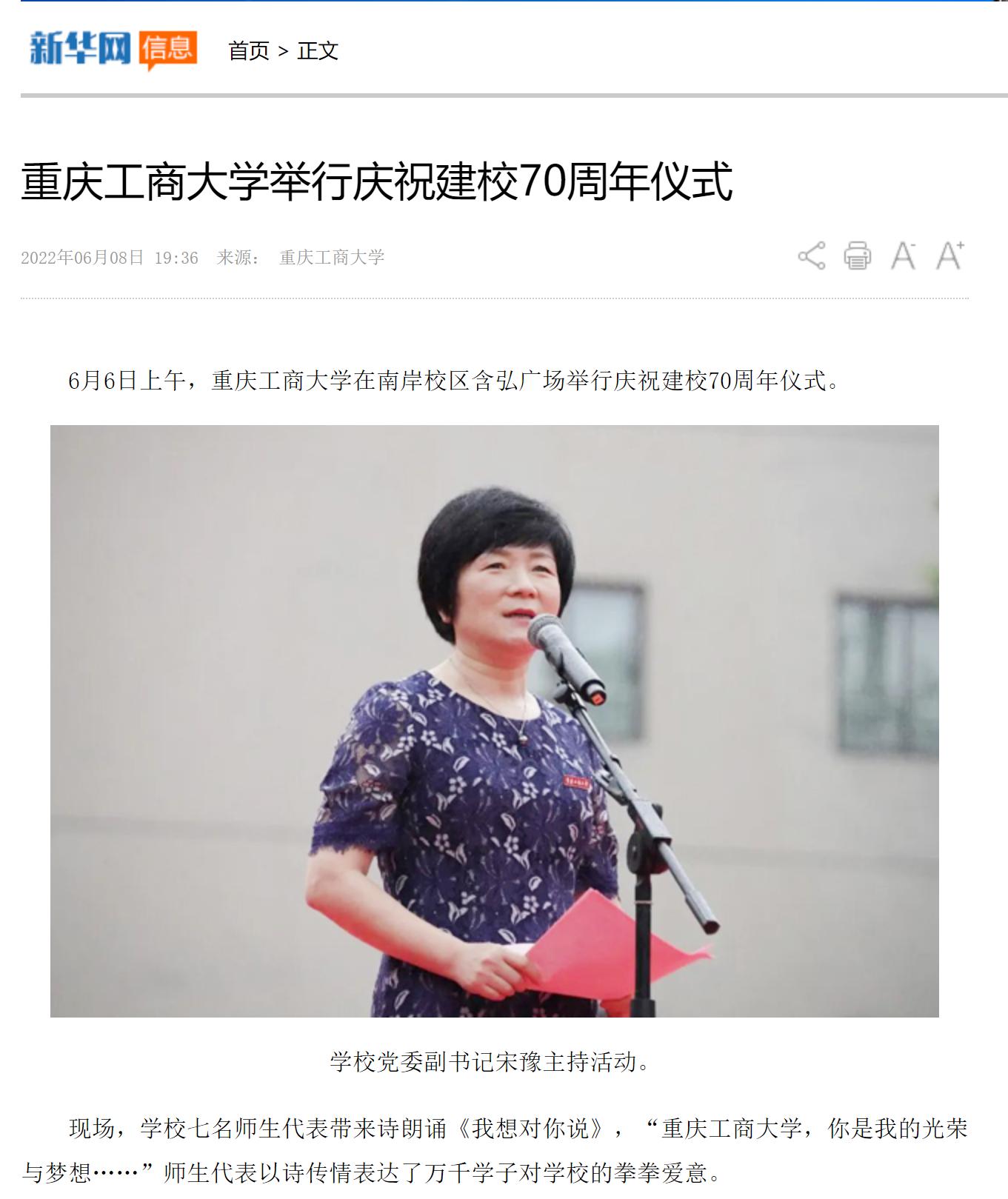 6月6日上午,我校在南岸校区隆重举行庆祝建校70周年升国旗仪式。6月8日,新华网客户端以“华体会体育·(sports)官方网站举行庆祝建校70周年仪式”为题,进行转载报道。