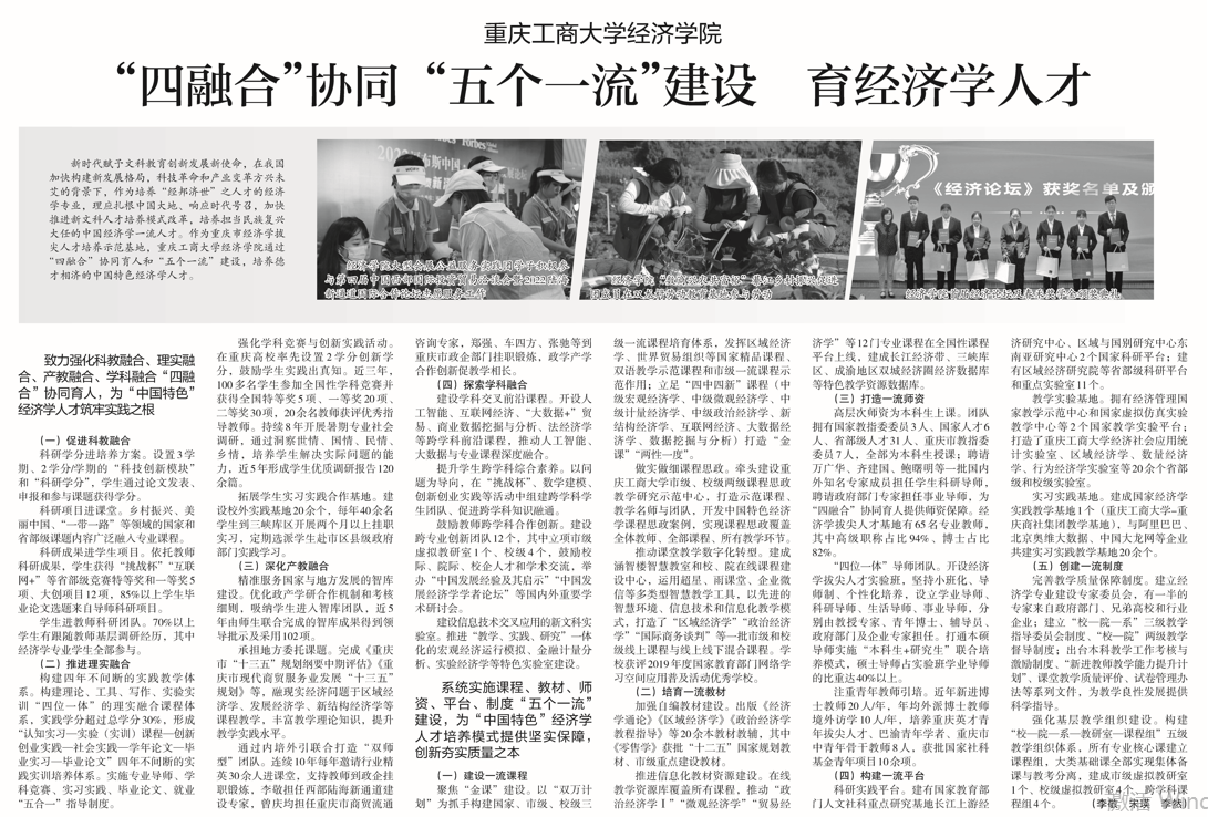 致力强化科教融合、理实融合、产教融合、学科融合“四融合”协同育人,为“中国特色”经济学人才筑牢实践之根