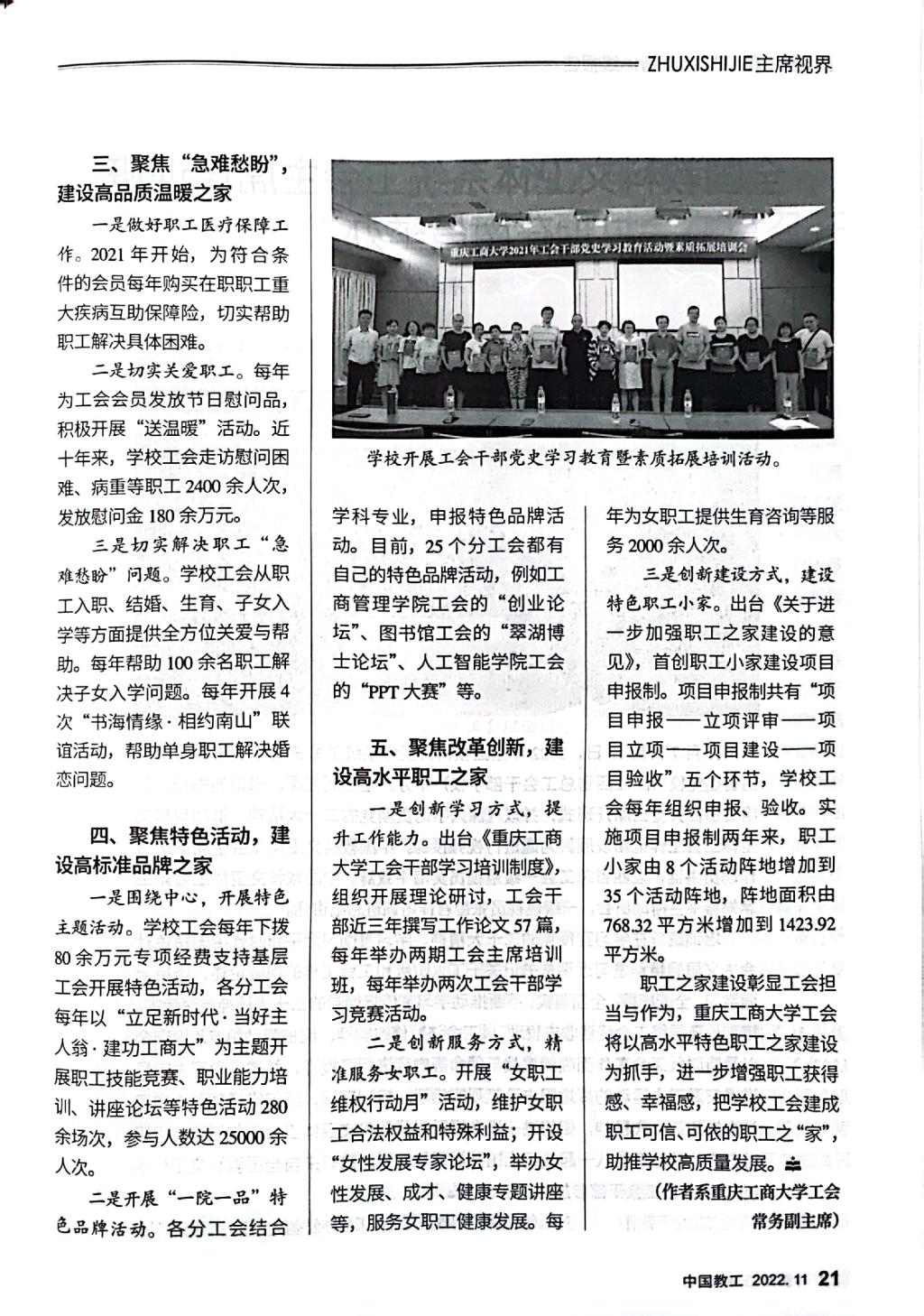 中华全国总工会主管的《中国教工》近期刊发文章,专题介绍我校职工之家建设经验。