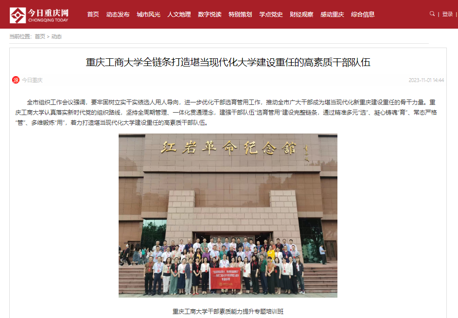 11月1日,今日重庆网以《华体会体育·(sports)官方网站全链条打造堪当现代化大学建设重任的高素质干部队伍》报道我校干部队伍建设工作的做法经验。
