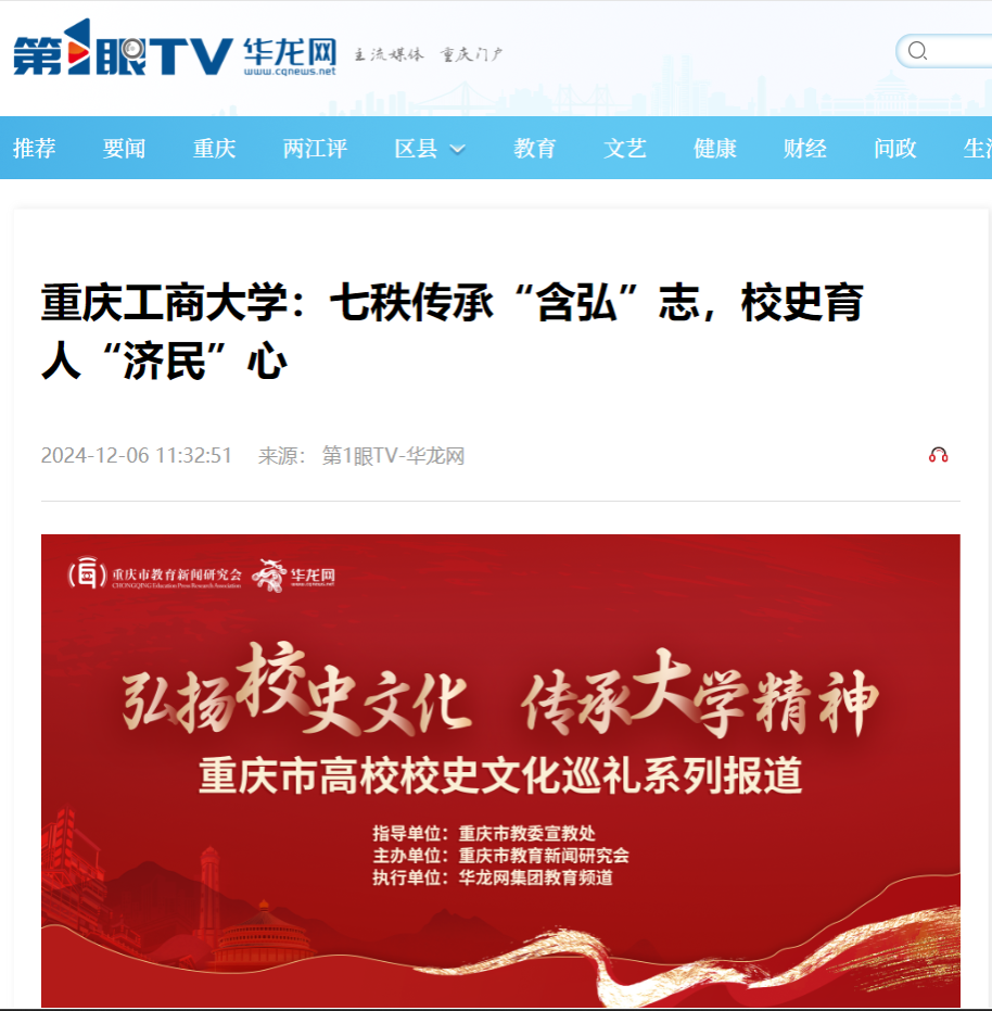 12月6日,华龙网第1眼TV以《华体会体育·(sports)官方网站:七秩传承“含弘”志,校史育人“济民”心》为题,报道我校校史文化育人工作。