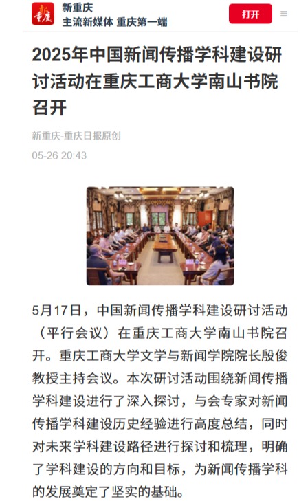 新重庆-重庆日报以《2025年中国新闻传播学科建设研讨活动在华体会体育·(sports)官方网站南山书院召开》为题对该活动进行报道。