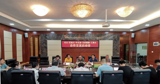 7月17日,成渝双城经济圈废塑料资源化研究合作交流启动会在我校废油资源化技术与装备工程研究中心召开。四川大学(弗吉尼亚大学)刘锦超、宋君祥,中国石油大学(华东)国家重质油重点实验室副主任柳云骐,四川天府健康产业研究院常务副院长王敬华,中国石油集团邓子林参加了此次会议。我校废油资源化技术与装备工程研究中心主任龚海峰、首席专家张贤明,以及与项目相关的多名教授、博士等研究人员参加了合作交流。学校党委李志雄书记专程到会看望、慰问了来校合作的成都方面的专家、领导。