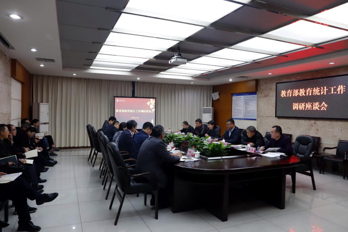 11月28日下午,教育部教育事业统计工作组来校开展调研,并在我校厚德楼3019会议室召开调研座谈会。专家组组长、教育部学校规划建设发展中心处长关欣,天津市教委财务与资产管理中心郭福生,西安市新城区教育局徐军,重庆市教育委员会发展规划处唐明全、徐武,我校校长孙芳城以及相关职能部门负责人参加了会议。会议由副校长苟朝莉主持。