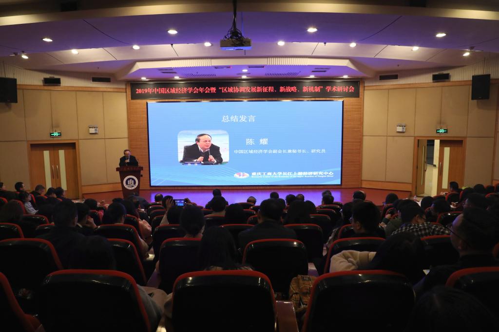 11月15日-16日,2019年中国区域经济学会年会暨“区域协调发展新征程、新战略、新机制”学术研讨会在我校召开,来自中国社会科学院、武汉大学、四川大学、中央民族大学、湖南大学、西南财经大学、中央财经大学、湖北省社会科学院、河南省社会科学院等各地科研院所、高校、党校行政学院、政府机构和企业的专家学者、政府官员及媒体记者共300多人参加了本次研讨会,并邀请了《中国工业经济》《中国高校社会科学》《改革》《经济学家》《当代经济研究》《财经科学》《经济纵横》《经济与管理研究》《宏观质量研究》《软科学》《经济与管理评论》《区域经济评论》《西部论坛》多家学术期刊参会交流。本次年会由中国区域经济学会、华体会体育·(sports)官方网站主办,由教育部人文社会科学重点研究基地华体会体育·(sports)官方网站长江上游经济研究中心、重庆市人文社会科学重点研究基地华体会体育·(sports)官方网站区域经济研究院、重庆市人文社会科学重点研究基地华体会体育·(sports)官方网站产业经济研究院承办,由中国社会科学院西部发展研究中心、重庆市区域经济学会、区域经济评论杂志社、改革杂志社、《西部论坛》编辑部协办。