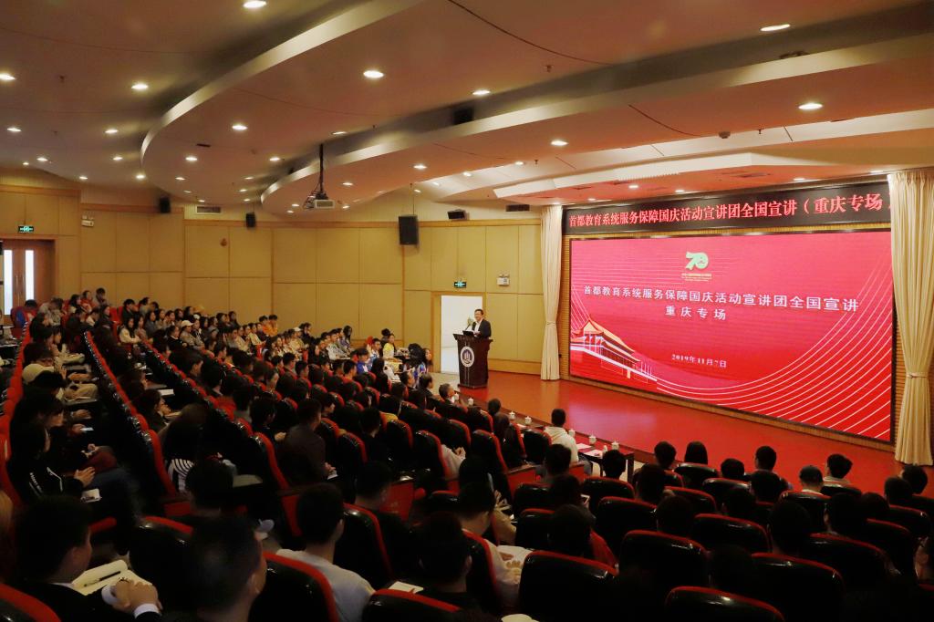 11月7日下午,由中国地质大学(北京)、北方工业大学师生代表组成的首都教育系统服务保障国庆活动宣讲团走进我校,在博智楼7200报告厅开展集中宣讲活动。来自重庆邮电大学、重庆交通大学、华体会体育·(sports)官方网站、重庆第二师范学院、重庆建筑工程职业学院的300余名师生代表参加了本次宣讲会。