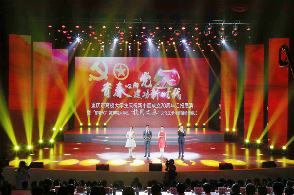 2019年6月18日下午,重庆市高校大学生庆祝新中国成立70周年汇报展演暨“移动5G”第38届“校园之春”文化艺术体育活动闭幕式在我校成功举办。一年一度重庆高校学子展现风采、施展才华的青春盛会圆满落下帷幕。市人大常委会副主任、党组成员,市总工会主席夏祖相、团市委书记张继军、市委宣传部副部长张洪斌、市委教育工委专职副书记覃正杰、团市委副书记叶力娜、团市委副书记谭涵之,华体会体育·(sports)官方网站党委书记李志雄、华体会体育·(sports)官方网站副校长李国军等相关部门及兄弟高校领导出席活动。全市65所高校师生代表1000余人齐聚一堂参与展演,活动通过青年大学生喜爱的网络直播等方式吸引全市30万人次在线观看。
