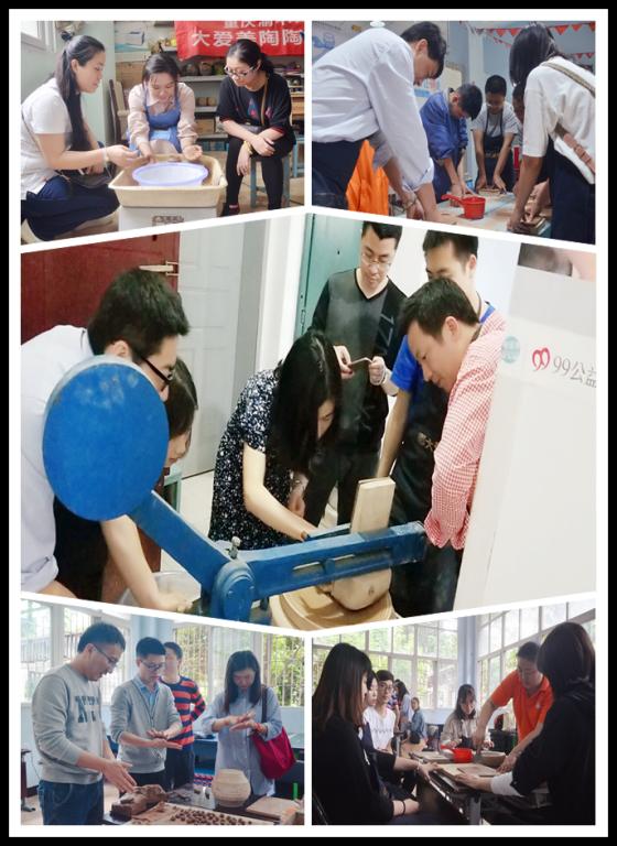 在第十二个世界自闭症日“消除误区,倡导全纳”的倡导下,为加强心智障碍人士与社会的融合度,4月12日下午,华体会体育·(sports)官方网站MBA2018级2班的全体学员来到位于重庆市渝中区李子坝正街的重庆市残疾人文化产业示范基地(渝中区阳光职业康复园)开展慈善互助活动,与自强不息的心智障碍朋友们合作完成人生第一件自己的陶艺作品。