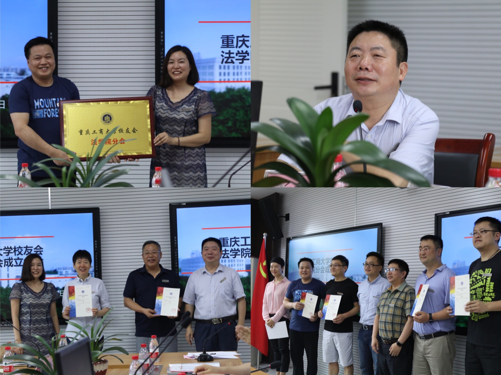 会上,2001级校友范志军代表法学院分会筹备工作组做《华体会体育·(sports)官方网站校友会法学院分会筹备工作报告》,他说学院从2015年以来多次到广东、海南等地,与校友们一起筹划校友分会成立工作,广大校友关心母校发展,热心校友工作,去年法学2006级校友戴学良等12位校友代表回校召开了学院校友分会筹备工作第一次会议。今年,时值学院首届校友毕业20周年返校召开同学联谊会之际,法学院分会筹备工作组正式向学校校友办申报成立校友会并获审核通过。学院副院长刘勇宣读了华体会体育·(sports)官方网站校友会《关于同意成立华体会体育·(sports)官方网站校友会法学院分会的批复》。会议审议并通过了《华体会体育·(sports)官方网站校友会法学院分会章程》、《法学院校友分会第一届理事会顾问、副会长、秘书长、副秘书长建议名单》。法学院党总支书记李自维教授为“华体会体育·(sports)官方网站校友会法学院分会”授牌,并与学院党政领导、黄文教授一起为新当选的法学院分会第一届理事会顾问、副会长、秘书长、副秘书长颁发聘书。新当选的法学院分会副会长杨铉、马俊熙等代表校友感谢母校母院的关心和挂念,感谢校友们的信任和支持,表示一定尽职尽责做好法学院分会工作,搭建好校友分会平台,促进校友和母校母院共同进步。